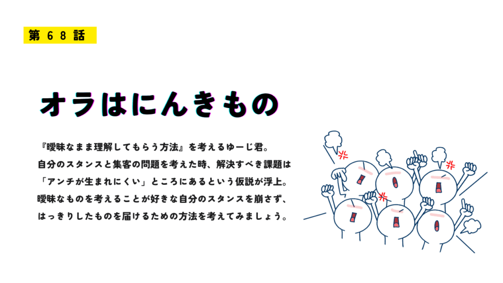 まぁ整理すると「自分のモチベーションの方向」と「集客の仕組み」が噛み合ってないのかな。
